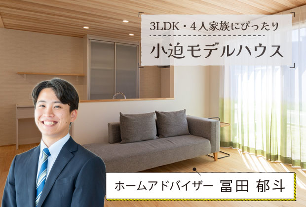 須屋小迫モデルハウス(合志市) 3LDK・4人家族にぴったりの木の住まい【1F編】−新入社員・冨田と一緒に学ぼう!vol.6−