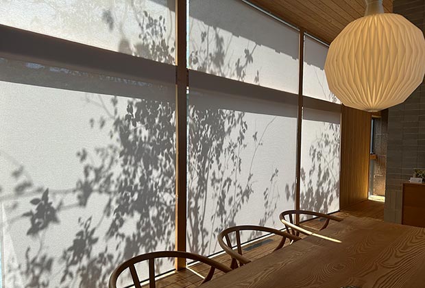 皆さん、こんにちは。熊日RKK住宅展「市中山居」の西です。 10月を過ぎてもきびしい暑さが続き、今年は秋が来ないのではないかと心配しておりましたが、11月に入りようやく朝晩ひんやりとしてきて、秋の訪れを感じられるようになりましたね。 秋の訪れ...皆さんはどんな瞬間に感じますか? 空を見上げると、いつの間にか入道雲からいわし雲に変わっていたり、夜、鈴虫やコオロギの鳴く声が聞こえてきたり、店先で秋の果物がたくさん並んでいたり、どこからか金木犀の甘い香りが漂ってきたり・・・季節の移ろいを五感で楽しめるのは、本当に素敵なことですよね。 私がいつもおります「市中山居」もお庭の緑が多く、季節の移ろいを楽しむことができます。 「ツリバナ」の赤くはじけた実が、くす玉が開いたようでかわいいですね。 「ハクサンボク」の実が赤く色づくと、ヒヨドリがついばみにやってきます。この赤い実は、人も食べられるそうです。おいしいのでしょうか? 秋には紅葉だけでなく、LDKにつながる大きな窓のロールカーテン越しに映る景色も、今の季節ならではの美しさがあります♪ 私がいつもいるキッチンから見える景色。中庭の樹木の枝葉がまるで影絵のように映り込み、ゆらゆらと心地よい空間をつくってくれます。時には枝にとまった小鳥、よく見ると虫が葉っぱを食べたあとの穴まで映り込み、物語を感じます。この影をみて、「あぁ、秋がきたんだなぁ」と実感しています。 杉の無垢床にも影がくっきりと映って、見ているだけでなんだか癒されます・・・ 日が低くなる秋から冬の、お天気の良い午前中限定の景色ですので、ぜひ熊日RKK住宅展「市中山居」モデルへ遊びにお越しください。お待ちしております♪▼熊日RKK住宅展についてはこちらhttps://sumai.shinsan.com/modelhouse/details_2.html そして秋といえば・・・行楽の秋♪ドライブをして自然の中でリラックスしたり、おいしいものを食べたり・・・楽しいですね!! 新産住拓でも秋の行楽イベントとして、11月24日(日)に、バスで人吉・球磨へ「木材生産工場&人吉観光バスツアー」を開催いたします! 午前中は多良木プレカット工場にて、新産住拓の住まいづくりに欠かせない、“てまひま”かけた、「天然乾燥」のプロセスをじっくりと見学いただきます。これからお住まいを建てる方も、すでに建てた方も、お住まいへの愛着がさらに深まることでしょう♪ そして午後は人吉観光「青井阿蘇神社」または「ひみつ基地ミュージアム」のどちらかのコースを選んでいただきます。どちらも歴史を学ぶことができ、お子さまから大人の方まで皆さんにお楽しみいただけます。 秋の空のもとバスに乗ってのんびり、人吉までの日帰り旅行。紅葉も楽しめるかもしれません♪ぜひご参加ください!▼木材生産工場&人吉観光バスツアーの詳細はこちらhttps://sumai.shinsan.com/event/details_523.html 熊日RKK住宅展 西 優子