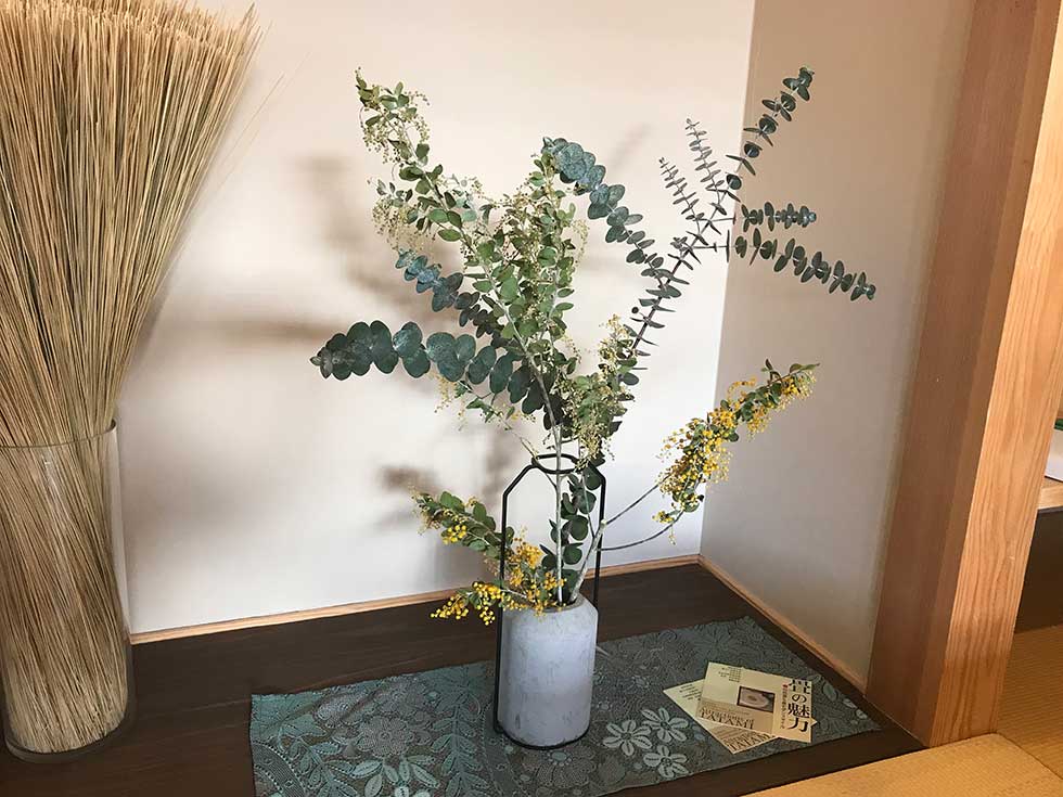 展示場では、ミモザが綺麗な時期ですので飾ってみました(^^♪