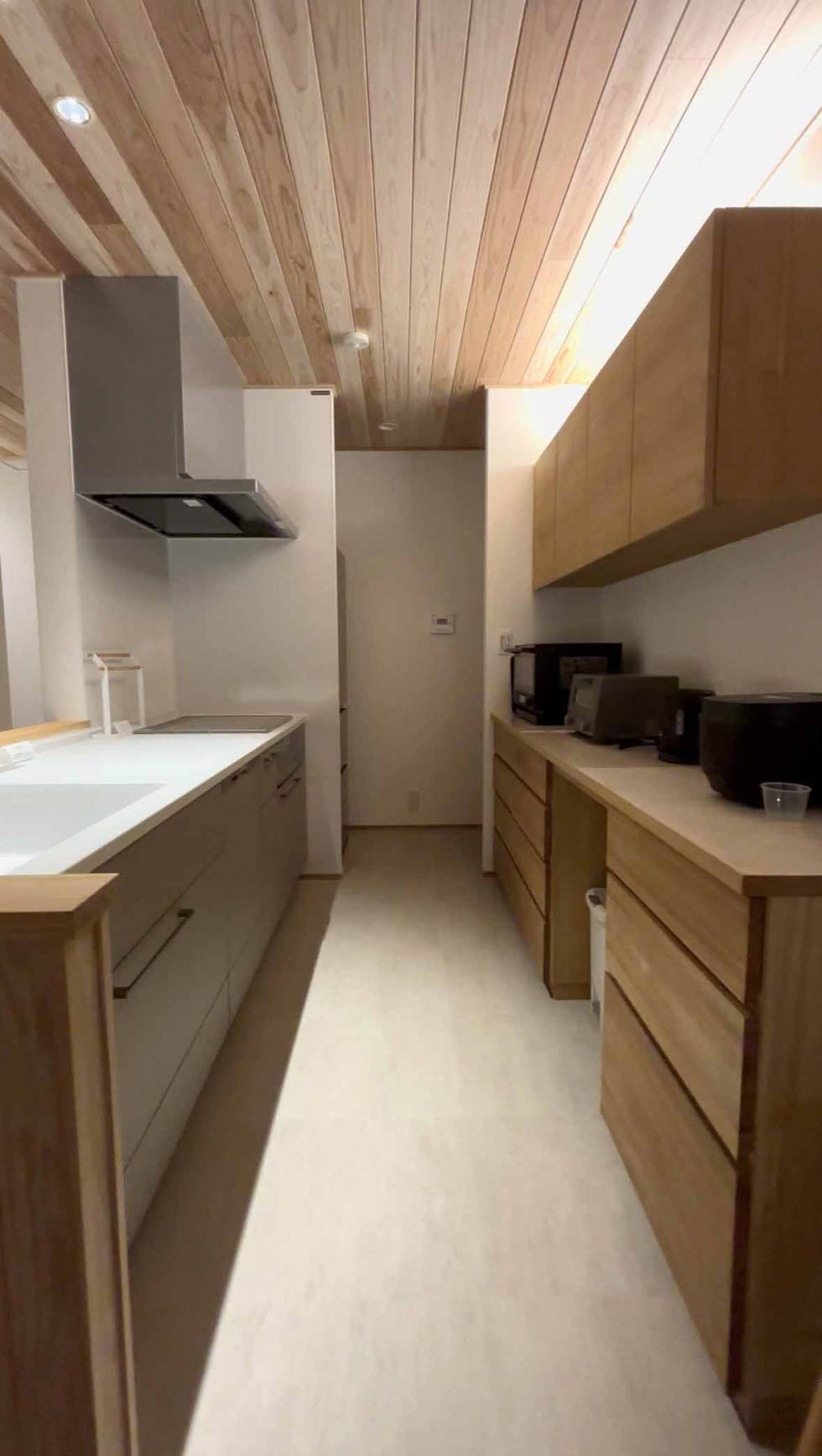 特に印象的だったのは、廊下から続く杉板天井が床材と方向をそろえている点。