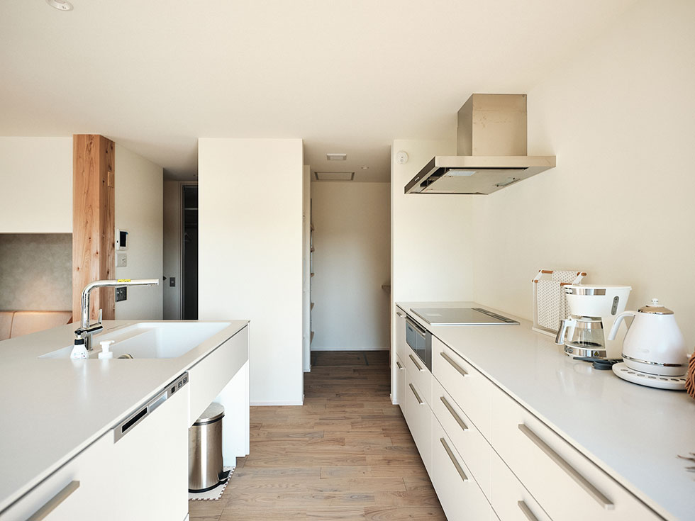調理・洗い物の動線が取りやすく、全体がすっきりとした印象で、写真映えしそうなデザインです。