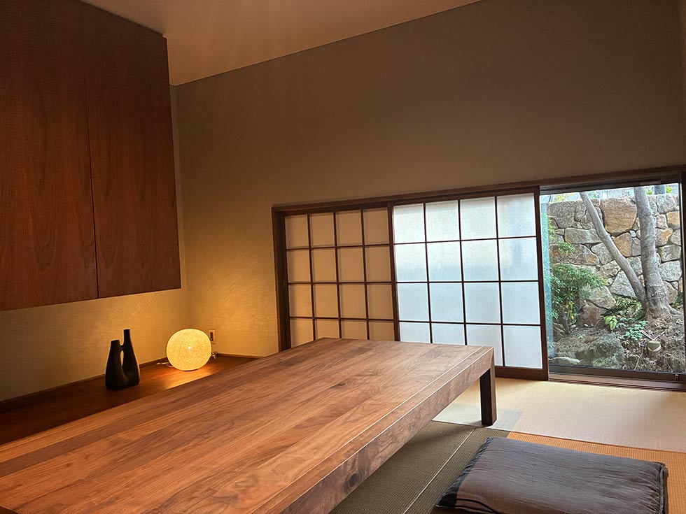 天井はあえて少し低めに設計されており、座った時に心が落ち着くような高さになっています。
