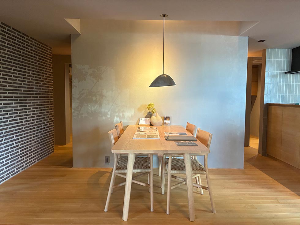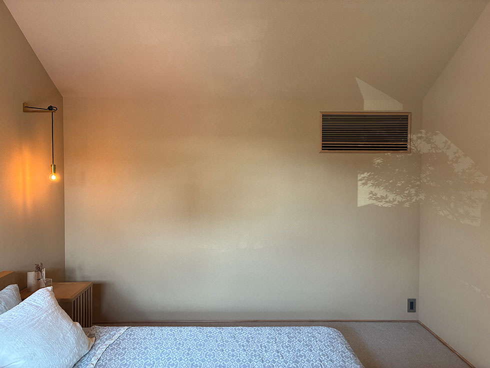 時間や季節によって、植栽の影が壁に映し出される様子はとても美しく、シンプルなお部屋がまるでアートギャラリーのように変わります。