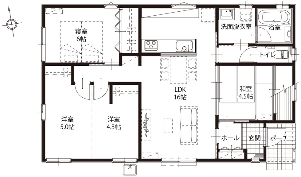 コンパクトな動線で無駄がなく、平屋ならではの暮らしやすさを感じていただけます。