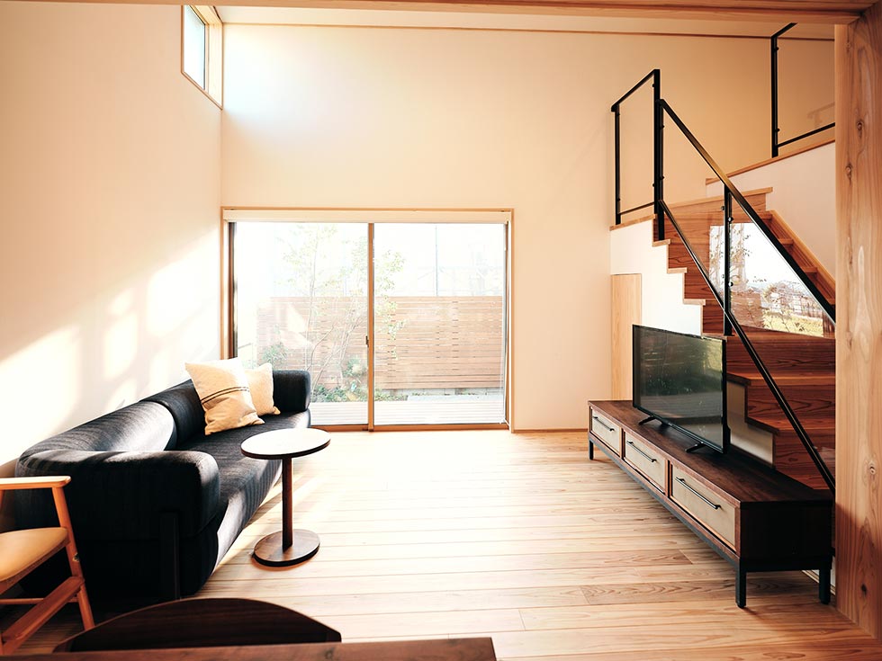 1Fに生活の中心を集約し、2Fは必要なスペースに絞った間取りは、無駄がなく、日々の動線もスムーズ。