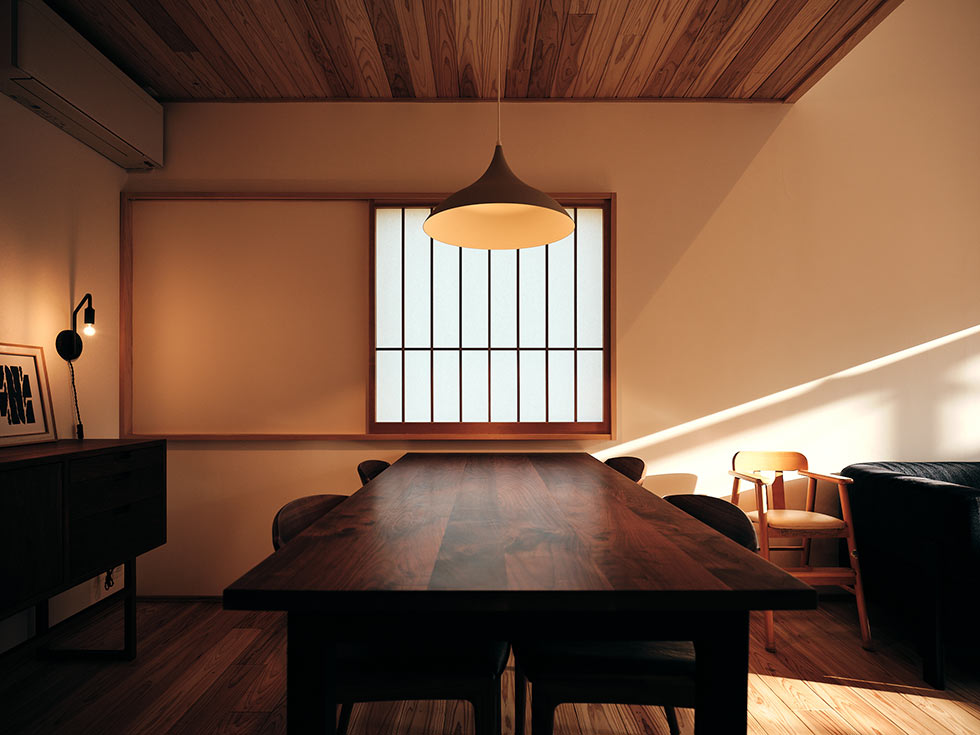 大きな窓から差し込む自然光が部屋の奥まで届き、時間帯によって表情を変える光と影を楽しめる空間になっています。