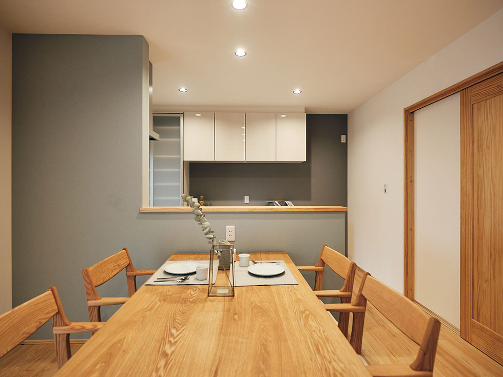 料理をしながら、リビングでくつろぐ家族の様子がわかるなど、家事をしながらも家族とのつながりを大切にできるキッチンです。