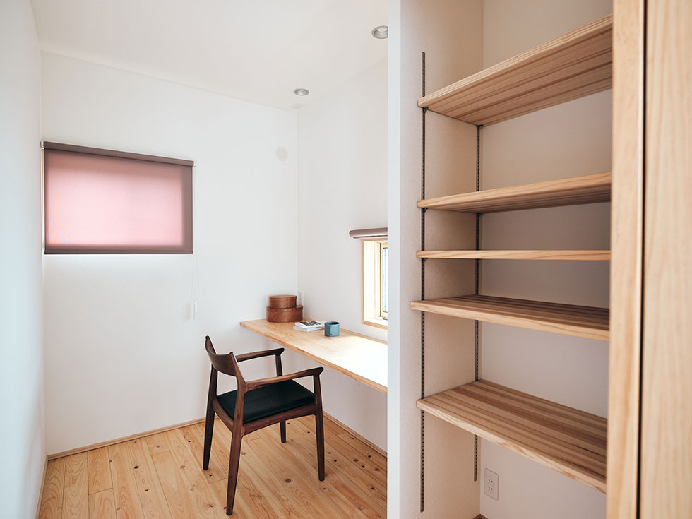 リビングの横には、コンパクトな書斎スペースを設けています。