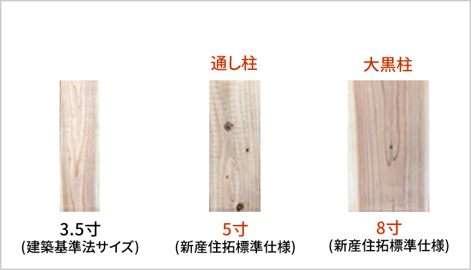 独自の木材流通システムが実現する、骨太の柱。