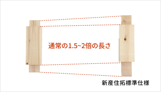 建物の強度を大きく左右する部分です。新産住拓では、通常の1.5倍~2倍の長さとなる