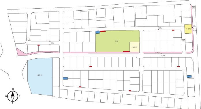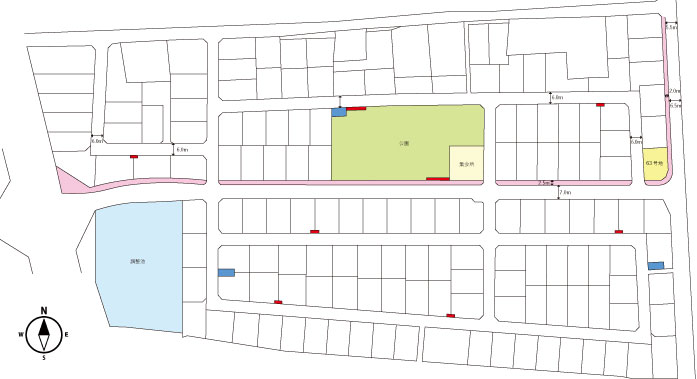 | 容積率 | 80% | 道路の幅員 | 北側7.0m/西側6.0m/南側6.0m(舗装) |