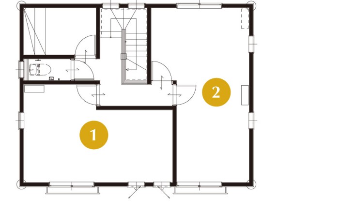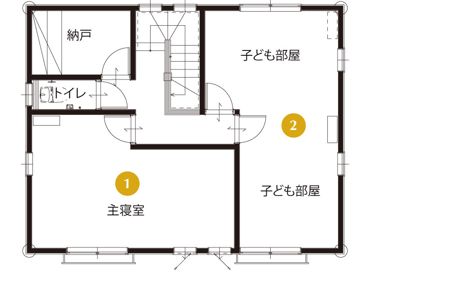 2Fの寝室は、ご家族の生活スタイルに合わせて可変性のある間取りになっています。