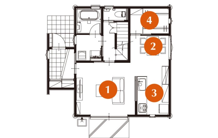 リビングやダイニング全体を見渡せるオープンなキッチン。家族の気配を感じながら調理ができ、小さなお子さまの様子も見守ることができます。収納スペースも充実しており、快適に家事が進められる機能的な空間です。
