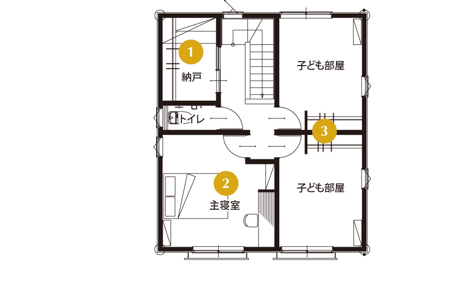 2Fには中段付きの納戸を設置。お布団や衣類、季節家電などをすっきり収納できます。
