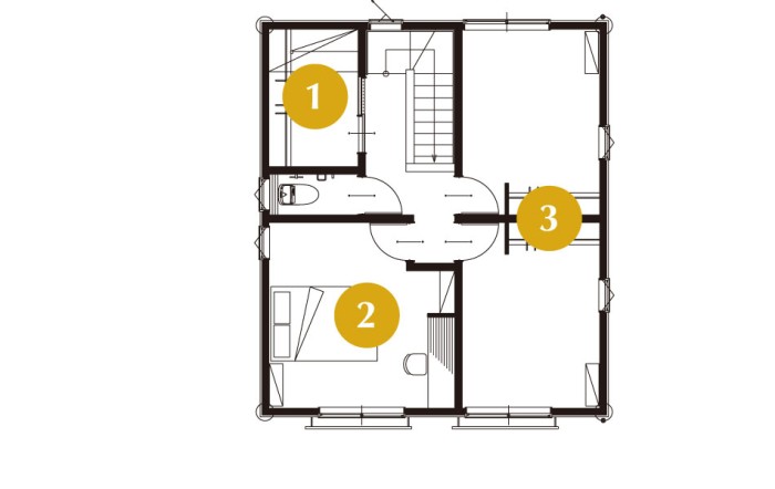 2Fの3つの寝室にはそれぞれの収納がある他、1Fと2Fに3帖の収納があり、収納が充実したモデルハウスです!