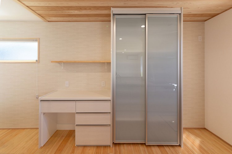 主寝室の一角にはカウンターと可動棚を設けています。在宅ワークや読書などに最適な書斎スペースとして活用でき、落ち着いた時間を過ごすことができます。