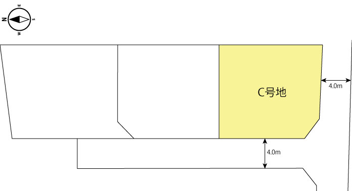 | 容積率 | 200% | 道路の幅員 | 西側4.0m/南側4.0m(舗装) |