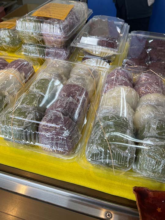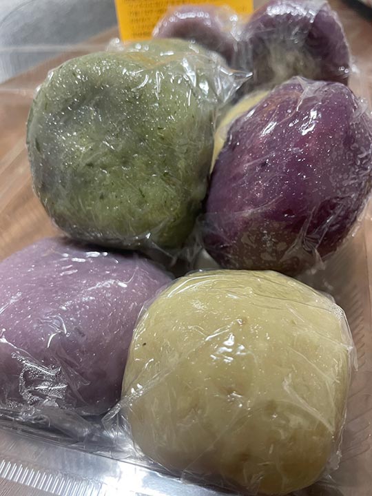 「いきなりだんご」はプレーン味・紫芋味・よもぎ味の3種類があり、皮がとてもモチモチで、中のお芋やあんこがずっしり入っています!