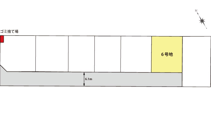 | 容積率 | 200% | 道路の幅員 | 南側6.1m(舗装) |
