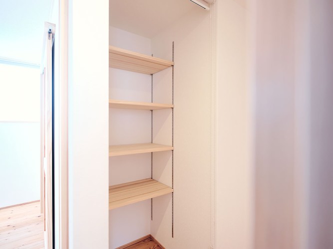 高さ90cmの玄関の造作収納は、上部には鍵や小物を置くことができます。また、壁には絵や写真を飾ることも可能です。