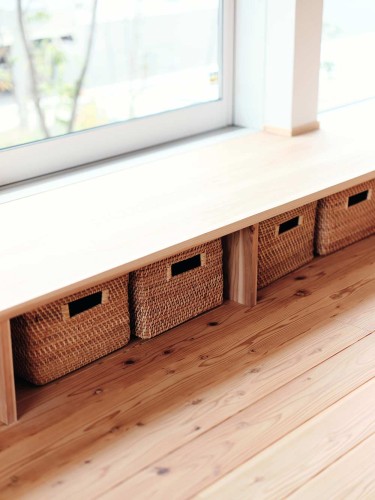 床には、木材の表面をこすって仕上げる 杉の「浮造り仕上げ」 を採用し、心地よい木の足ざわりを楽しむことができます。