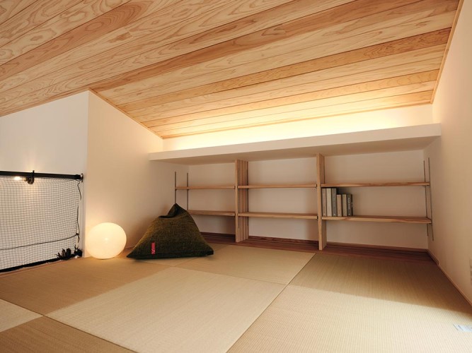 リビングに続くスキップフロアには、ほっと落ち着く畳コーナー。