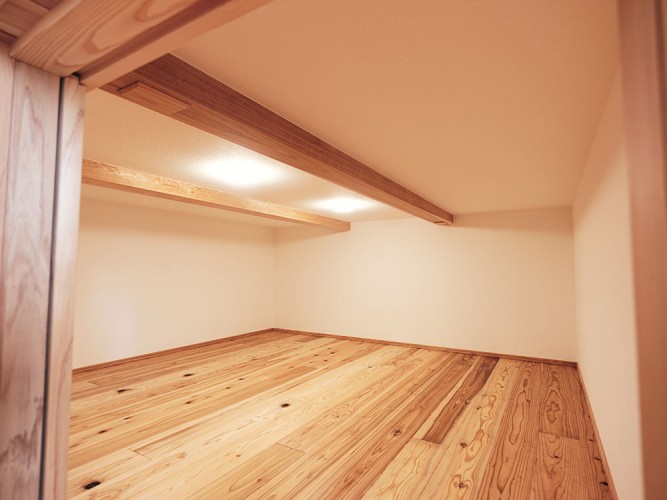 スキップフロア下の収納は天井の高さこそ低いものの、約4.5帖の広さがあるため、多目的に使うことができます。