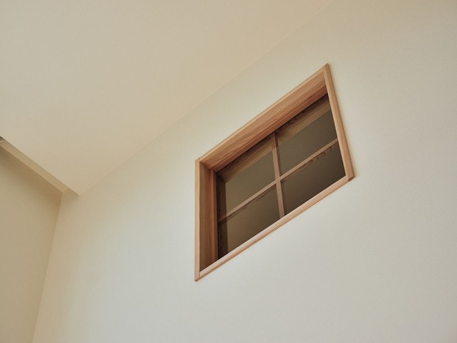 明かり窓や飾り棚なども設けた、可愛いらしい造作の洗面台。