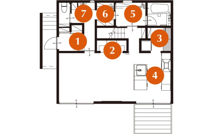 脱衣室と洗面台の間にクローゼットがあるため、朝の身支度や帰って来てからの着替えなど、スムーズな動線になっています。