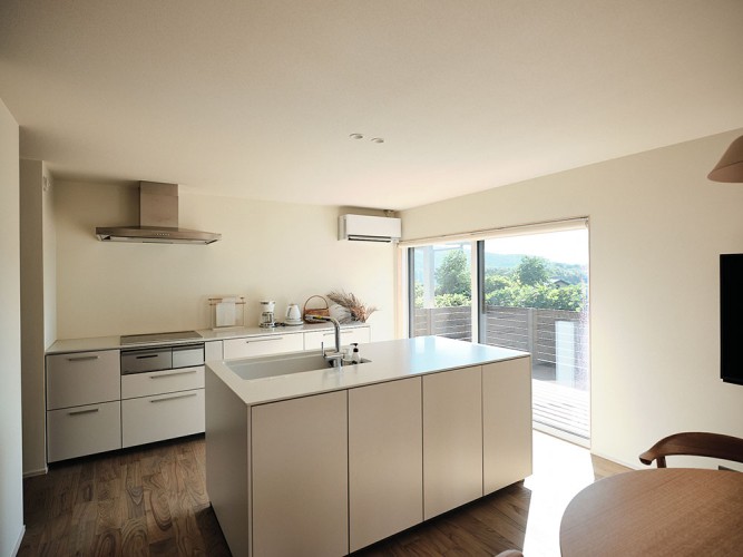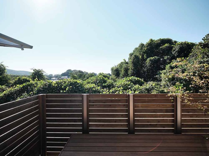 高台の特徴を活かして、景色を楽しむことができるよう配置された窓や、景観に馴染むアースカラーの落ち着いた外観もポイントです。