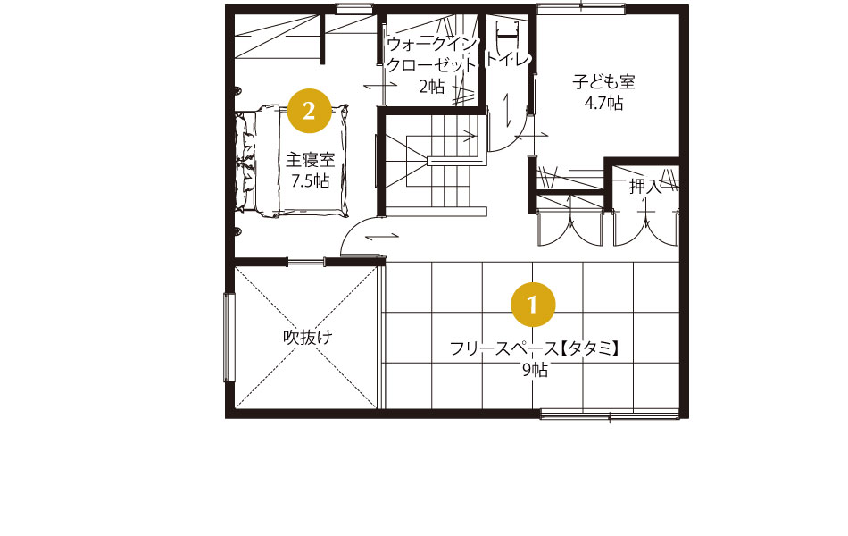 9帖のフリースペースは琉球畳を採用。ご家族一緒にお休みになる寝室や、キッズルームなど多目的な使い方ができます。