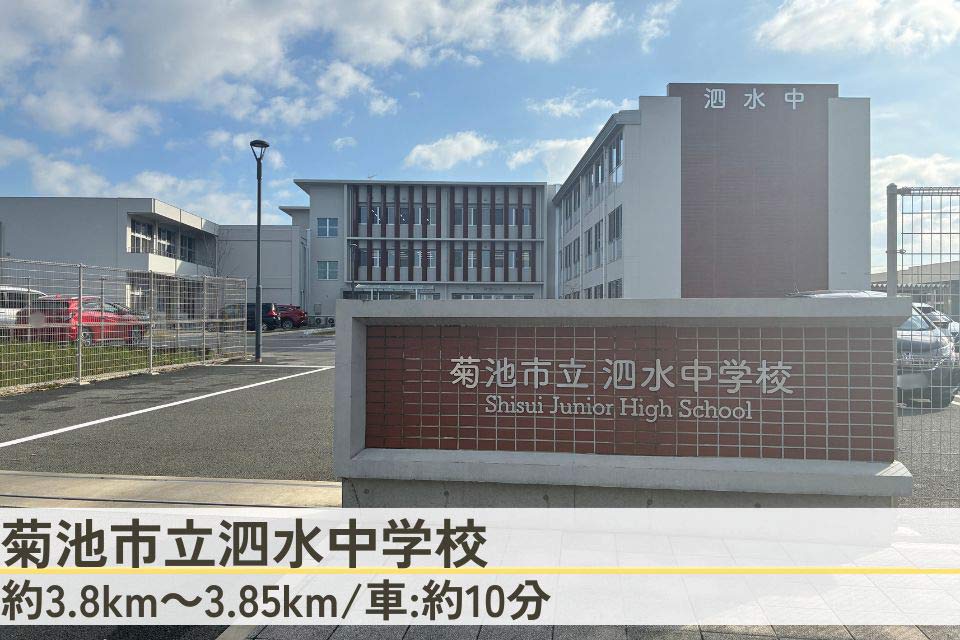 田島保育園(約200~250m/徒歩:約3~4分) 吉富保育園(約3.9~3.95km/車:約10分) 菊池市立泗水西小学校(約220~270m/徒歩:約3~4分) 菊池市立泗水中学校(約3.8~3.85km/車:約10分) |