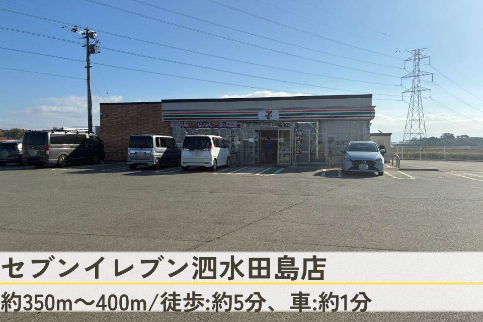 セブンイレブン 泗水田島店(約350~400m/徒歩:約5分、車:約1分) マルショク 泗水店(約3.4~3.45km/車:約9分) ゆめモール合志(約5.8~5.85km/車:約15分) ドラッグストアコスモス 泗水店(約3.5~3.55km/車:約9分) |