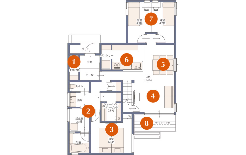 そして、ウッドデッキ・ロフト・スキップフロアなど、家中のあちこちに多目的に使える“ちょうどいい余白”を用意しました。