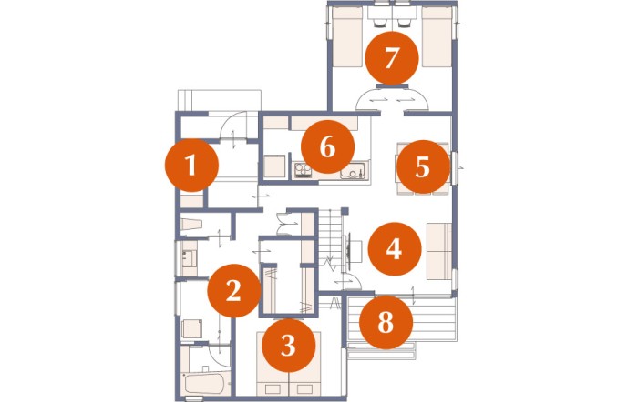 家族の気配を感じながら、収納・趣味・くつろぎの場として自由に使える、つながりと遊び心に満ちた住まいです。