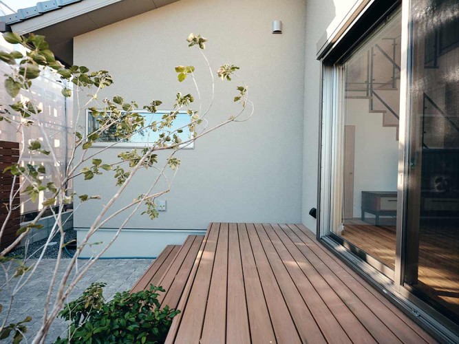 約4帖のウッドデッキは、天気の良い日には食事を楽しんだり本を読んだりと、外での暮らしを満喫できる空間です。