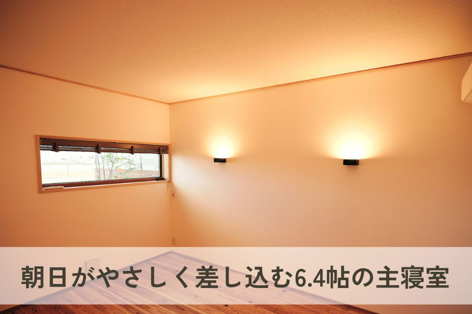 6.4帖の主寝室には東側の高い位置に窓を設けており、朝日がやさしく差し込む、心地よい空間となっています。