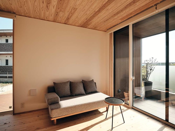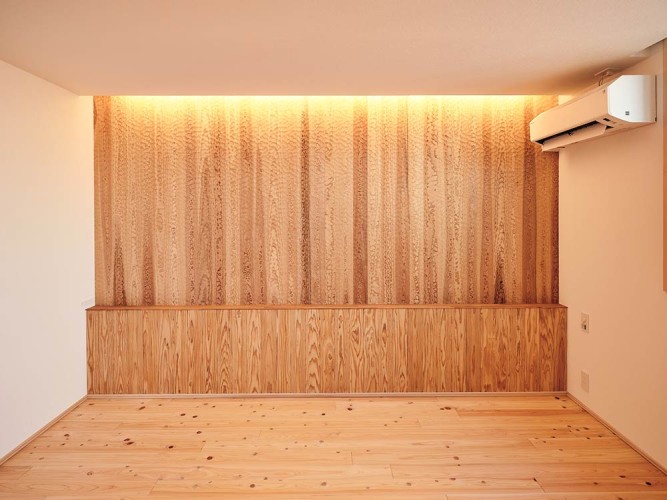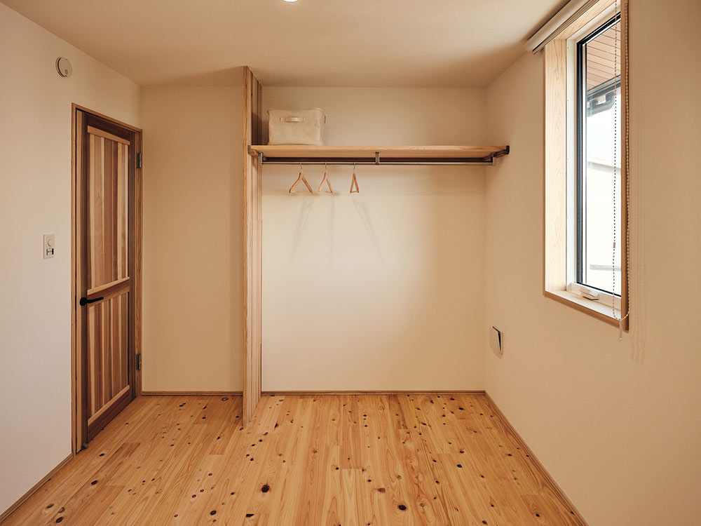 木の温もりを最大限に感じられる寝室。大切な空間だからこそ、自然素材をふんだんに取り入れました。