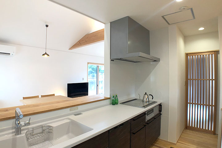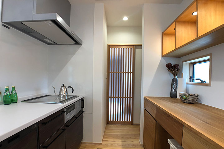 - 洗面台やキッチン背面・LDKには、木を活かしたオリジナルの造作収納