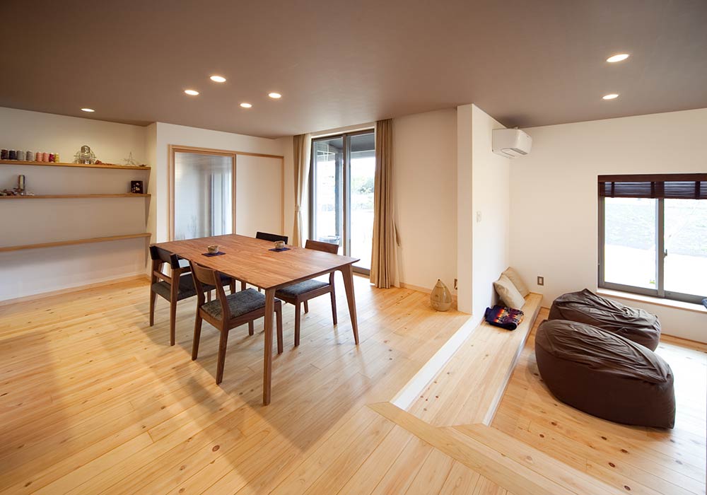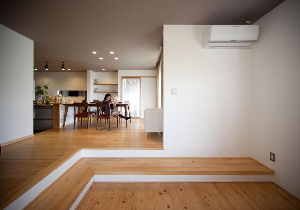 シンプルなデザインでありながら、古き良き時代の土間や部屋の段差、陰影の美しさなどを取り入れたことで、家族がほっと落ち着く住み心地のいい住まいをご覧いただけます。