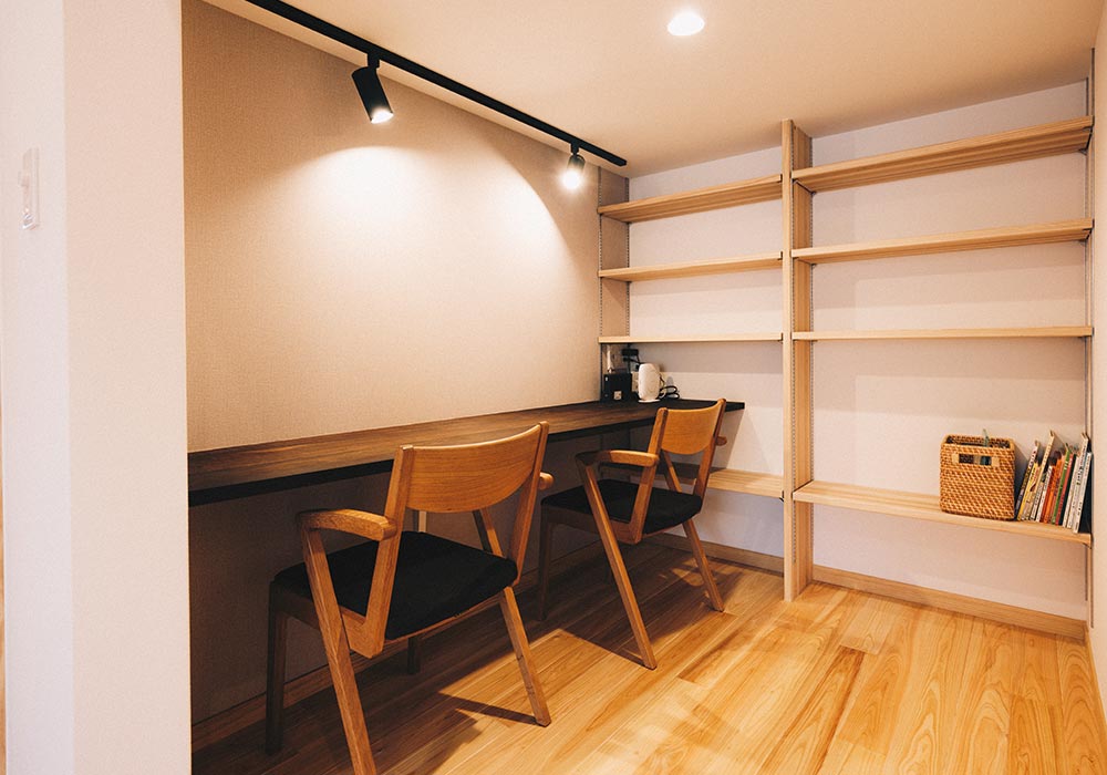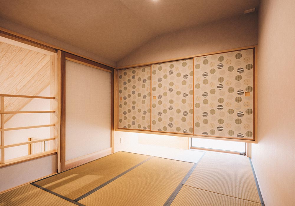 スキップフロアには、ホッと落ち着く和室を設けて仕事や趣味の空間として利用できる、“こもれる書斎”もあります。