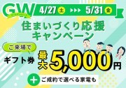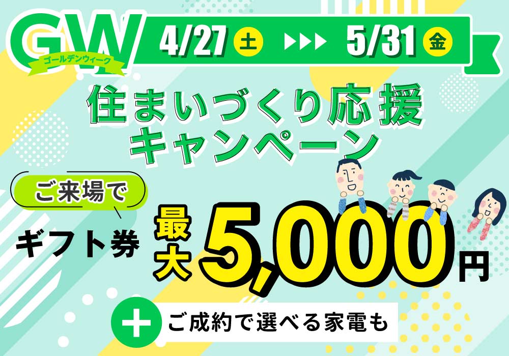 【ご来場で最大5,000円+選べる家電】ゴールデンウィーク 住まいづくり応援キャンペーン
