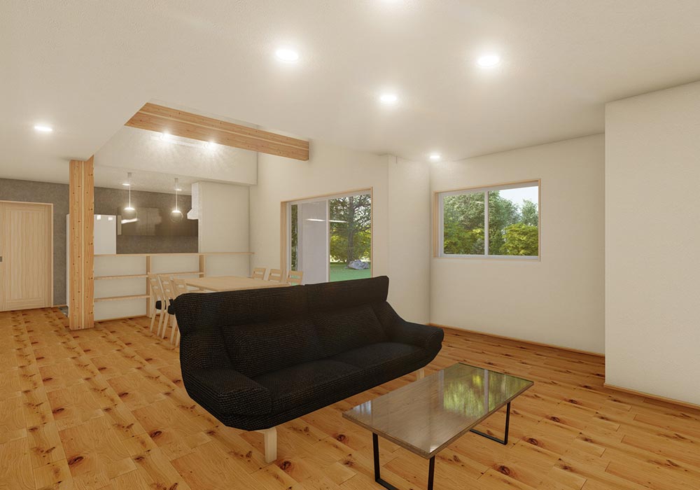 LDKにはオーク材を採用し、ナチュラルな雰囲気に仕上がりました