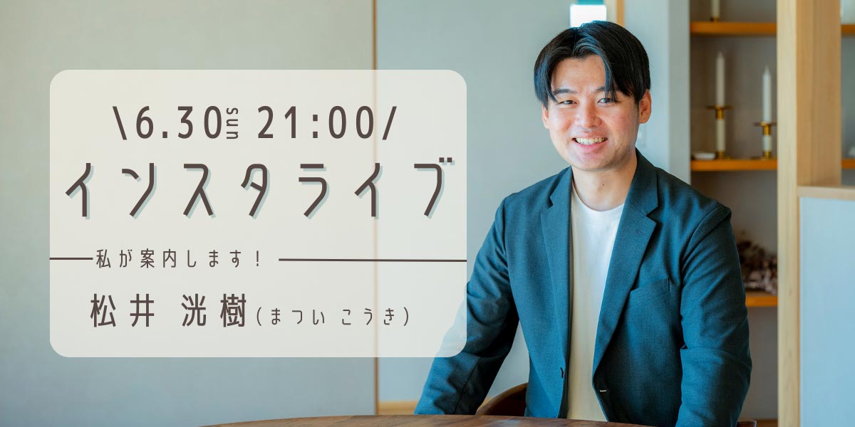 6/30[日]21:00~こちらのお住まいを担当したホームアドバイザーの松井とご案内します!