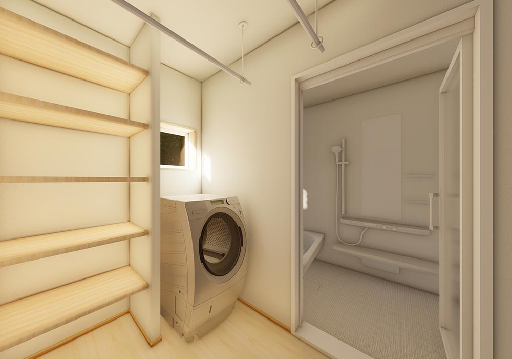 脱衣室はランドリールームとしても使うことができ、ウォークインクローゼットへの収納もスムーズです
