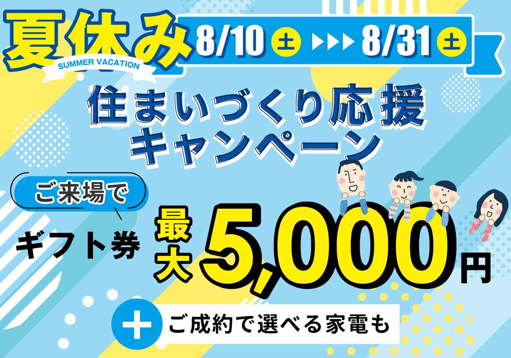 【ご来場で最大5,000円+選べる家電】夏休み 住まいづくり応援キャンペーン