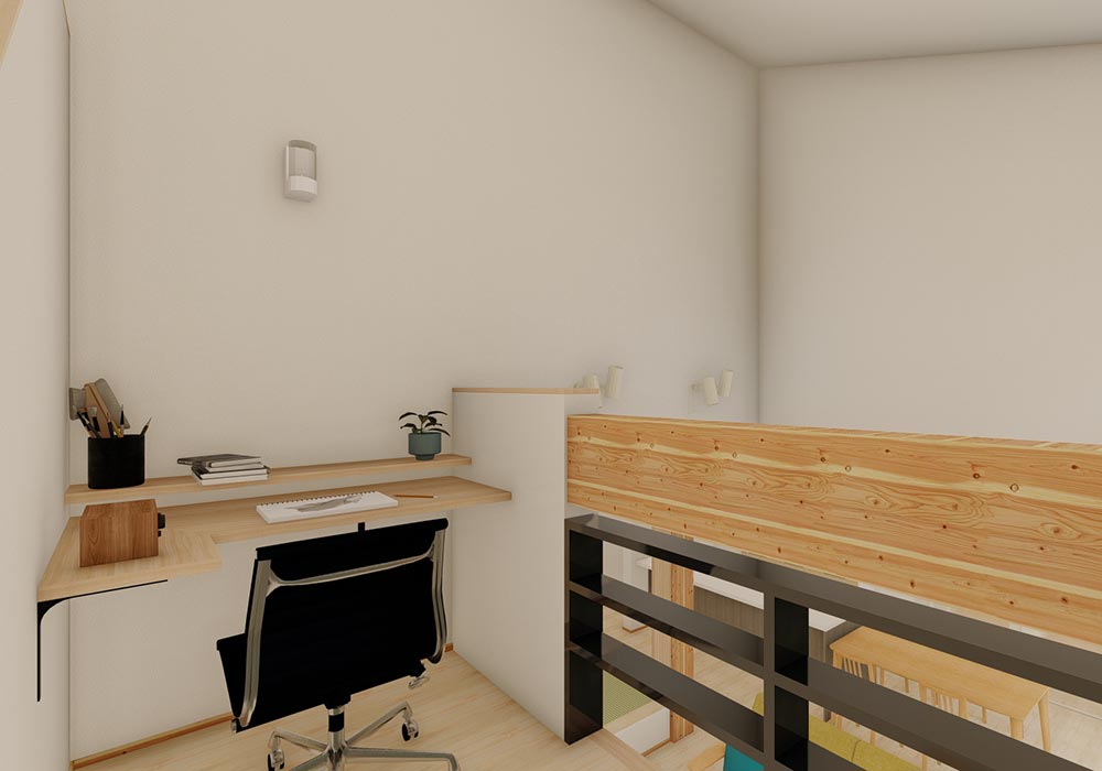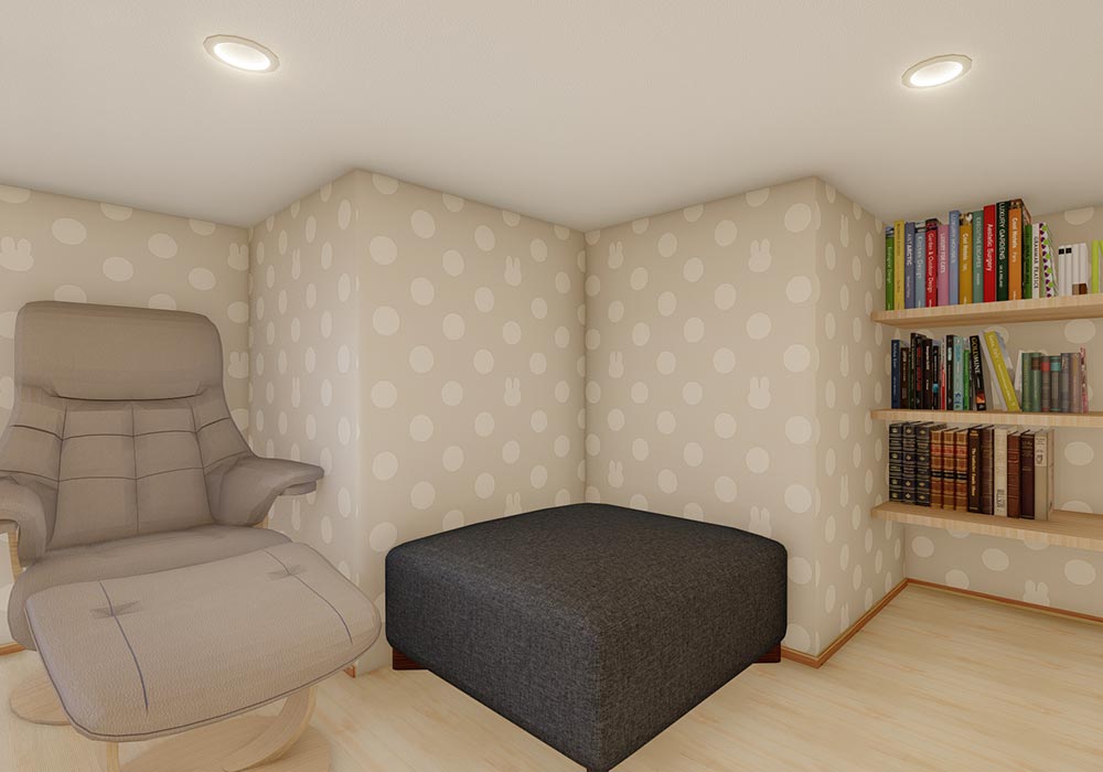 ヌックはお気に入りの本を読んだり、趣味を楽しむための小さなプライベートスペースとして、スキップフロアは開放感を保ちながらも、夫婦それぞれが静かに過ごせる空間として使っています。