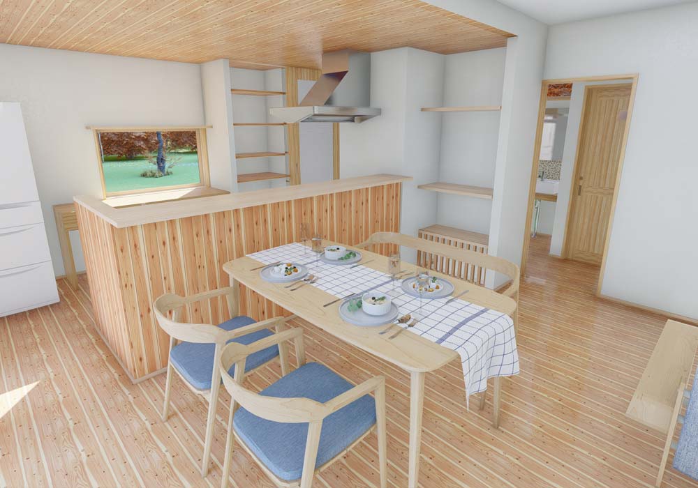 自然素材が大好きなので、壁・天井を杉板と珪藻土のみで仕上げ、温かみのある空間にしました。