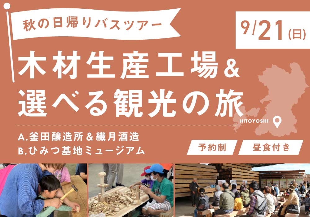 【秋の日帰りバスツアー】木材生産工場&選べる観光の旅