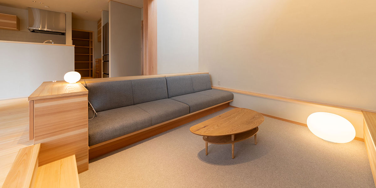 段を下げることで、他の空間と目線が変わり、同じ空間に居ながらも自然な仕切りがうまれます。